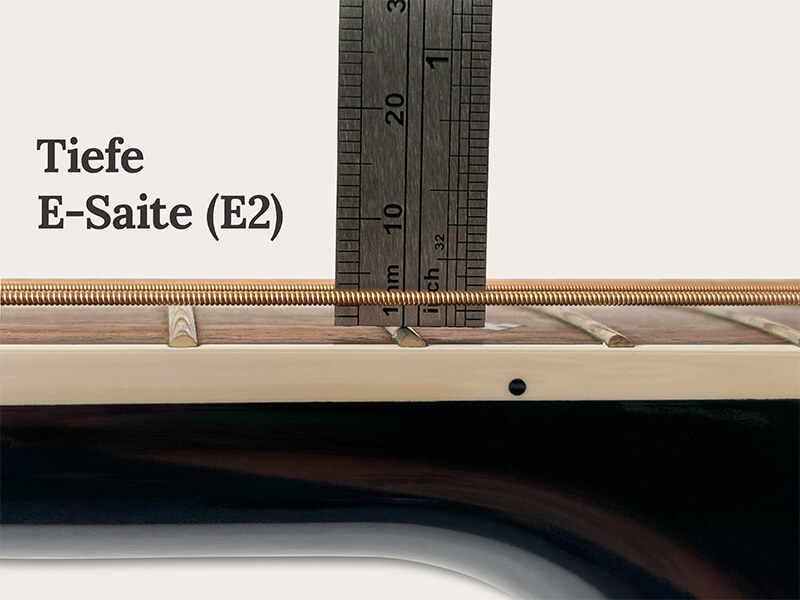 Der Abstand zwischen der Saite und den Bundstäbchen sollte bei Westerngitarren bei der hohen E-Saite (E1) 2 mm und bei der tiefen E-Saite (E2) 2,5 bis 3 mm und bei Konzertgitarren die E1 bei 3 mm und die E2 bei 3,5 bis 4 mm betragen. Die Millimeter-Werte sind als Richtwerte zu verstehen. Bei Flamenco-Gitarren ist die Standardeinstellung der Saitenlage 1 mm niedriger als bei Konzertgitarren. Das liegt unter anderem daran, dass Flamencospieler sehr schnell spielen, die Akkorde sehr schnell wechseln und somit schneller greifen können.