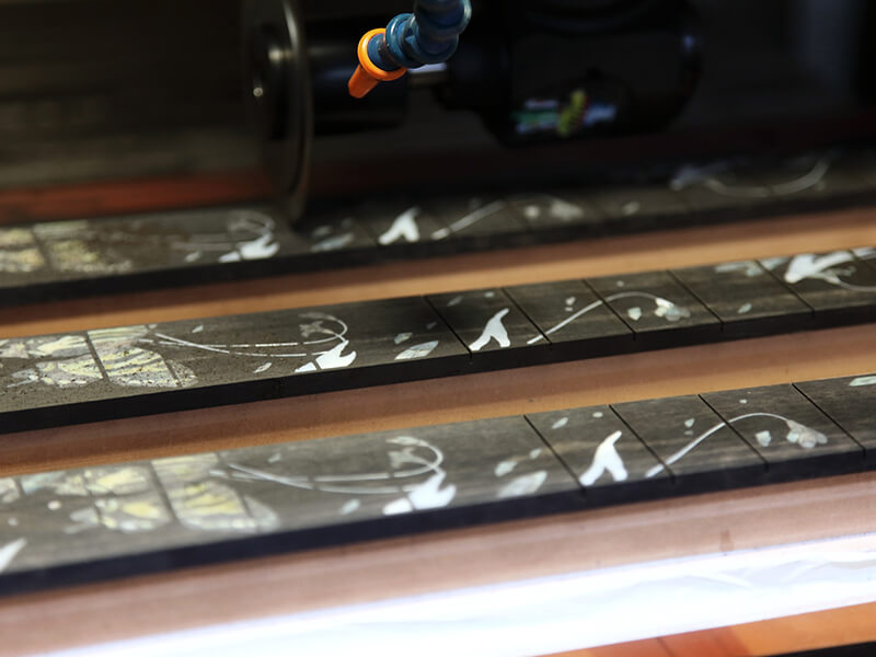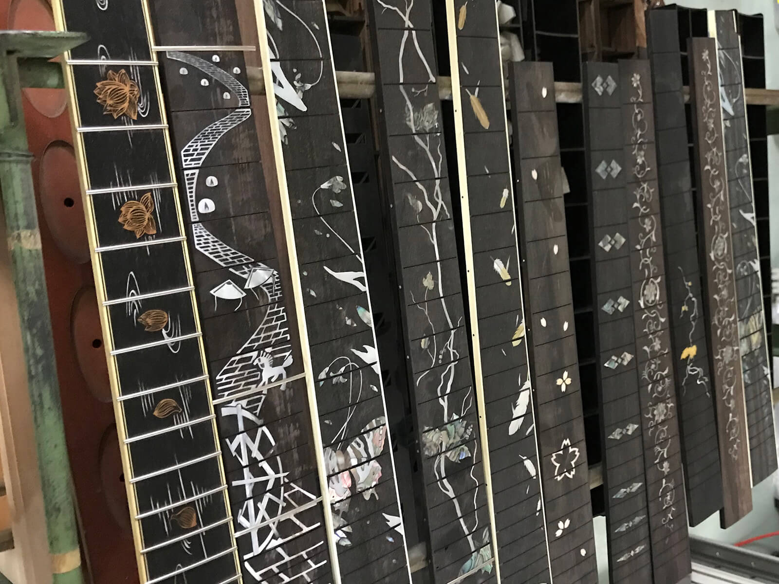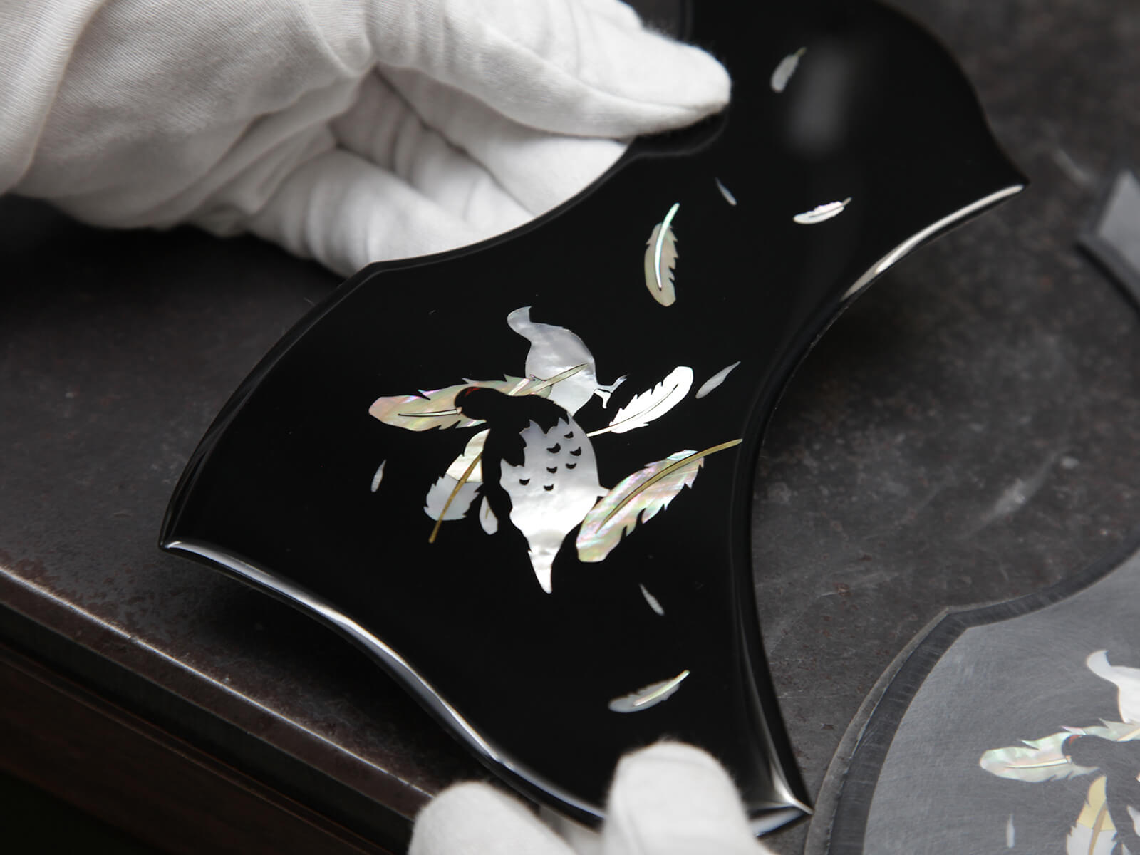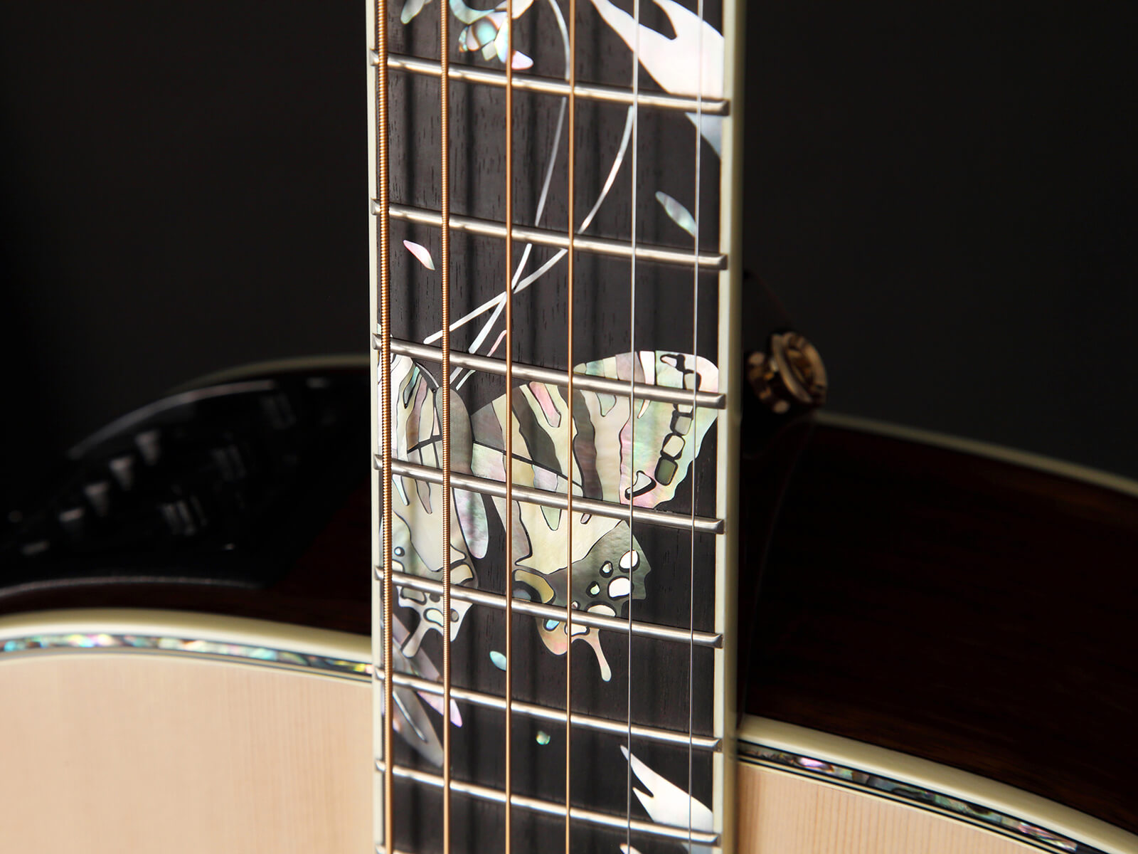 Takamine war der erste Hersteller, der in puncto kunstvoller und komplexer Einlagen neue Wege ging. Dazu gehört ein Material- und Fertigungsverständnis, das die Fähigkeiten anderer Gitarrenbauer in den Schatten stellt.