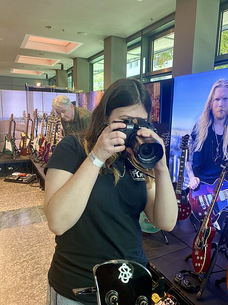 Als Mediengestalterin habe ich schon während des ersten Lehrjahres die benötigten Materialien für Messen erstellt, dazu gehören vor allem Messewände, T-Shirts, Banner und Give-Aways wie Aufkleber und Postkarten. Auf dem Guitar Summit war es besonders eindrucksvoll, alles davon in echt sehen zu können und wie sich das zu einem Messestand zusammenfügt, was man in der Vorbereitung erstellt und in Druck gegeben hat.