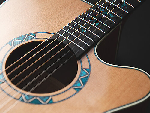 Die LTD2023 besticht durch die Kombination aus historischem Design und neuester Takamine Preamp-Technologie. Wie schon bei einigen Santa Fe Modellen zuvor, so zum Beispiel auch bei der legendären ESF93, werden für die Inlays auf dem Griffbrett und dem Headstock echter „Turquoise” verwendet. Der „Broken Arrow” ist in der Geschichte der indigenen Völker Nordamerikas ein Symbol des Friedens und der „Crossed Arrow Pfeil” im 12. Bund steht für Freundschaft. Beides ziert das Griffbrett und macht die Gitarre zu einem echten Hingucker.