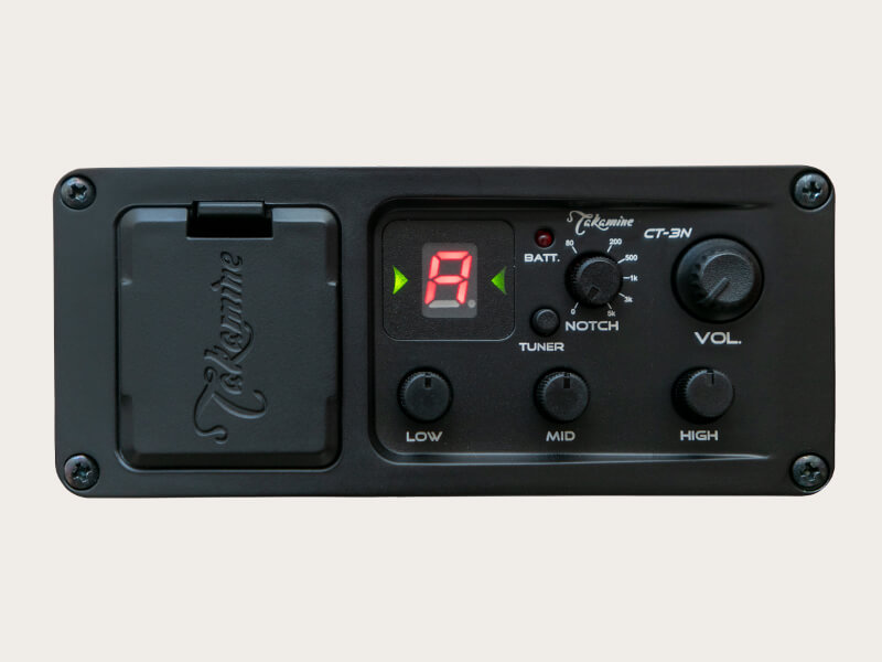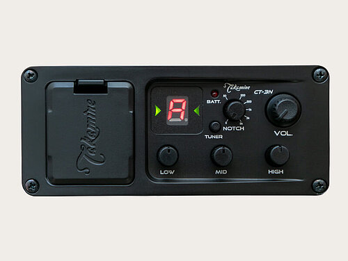 Für die Thinline-Serie wurde ein professionelles Preampsystem CT-3N entwickelt. Es verfügt über individuelle EQ-Regler für niedrige, mittlere und hohe Frequenzen sowie einen Notch-Filter für weitere EQ-Verbesserungen ( bzw. um Feedback-Probleme zu beseitigen), ein integriertes Stimmgerät, eine Batterieanzeige und einen Master-Lautstärkeregler. Mit dem CT-3N in Verbindung mit Takamines renommiertem Palathetic-Tonabnehmer klingen diese Gitarren sowohl solo als auch in einer Band hervorragend.