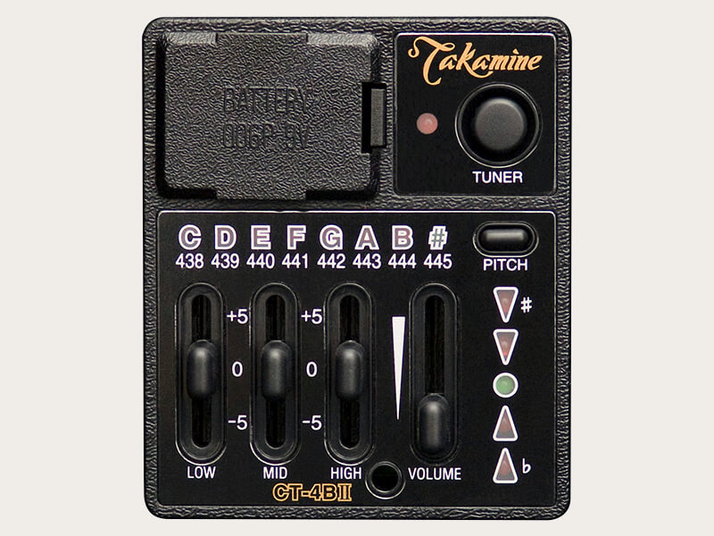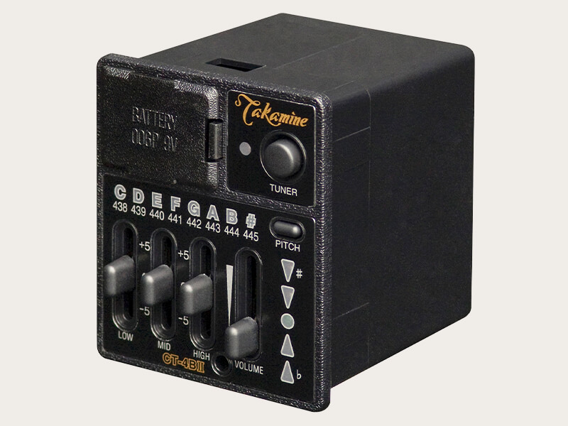 Der Takamine CT-4BII Vorverstärker findet sich in einigen Modellen, der den in Japan gebauten Takamine-Gitarren der Pro und Legacy Serie. Er ist nicht kompatibel zu den Instrumenten und der Elektronik der G-Serie.