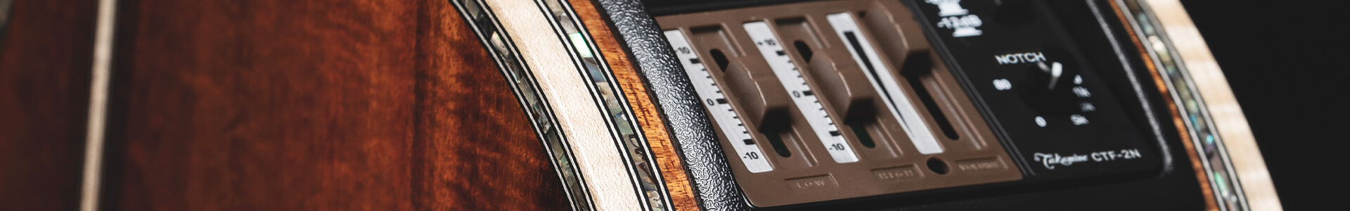 Für professionelle Musiker auf der Bühne, die sich bei der EQ-Korrektur auf den „Front of House“-P.A.-Mix verlassen, ist ein 2-Band-EQ (Bässe und Höhen) ausreichend, aber für die Spieler, die lästige Rückkopplungen mit den On-Board-Reglern unterdrücken müssen, hat Takamine eine sehr effektive Notch-Filter-Funktion hinzugefügt, um solche störenden Frequenzen zu unterdrücken.