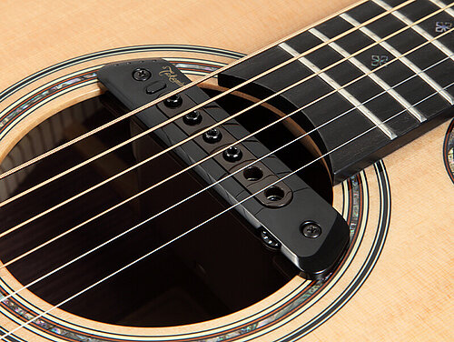 Der aktive Schalllochtonabnehmer TRI-AX II mit „Class A“-Vorverstärker bietet eine herausragende Ansprache und einen warmen, präsenten Klang. Das Besondere am TRI-AX: Der Pickup nimmt die Saiten nicht nur magnetisch ab; sein schwimmend gelagerter „Tri-Axial Dynamic-Body Sensor“ nimmt auch die Korpusschwingungen direkt auf. Das Ergebnis ist eine bisher nicht gekannte Natürlichkeit des Tons, die mit herkömmlichen Systemen dieser Bauform nicht zu vergleichen ist. Der Aufbau wurde so gewählt, das Rückkopplung, Rauschen und Brummen kein Thema sind. Ein mit den Fingerspitzen einstellbarer Volumenregler ist ebenfalls an Bord.