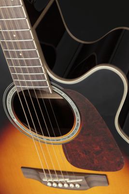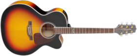 Die massive Fichtendecke sowie der Boden und die Zargen aus geflammtem Ahorn verleihen der GJ72CEBSB einen großen und durchsetzungsfähigen Sound, der nun einmal zu einem Jumbo gehört. Der schlanke Mahagonihals und das 12”-Griffbrett mit Binding tragen entscheidend zum positiven Spielgefühl bei. Das eingebaute Takamine TK-40D Vorverstärkersystem enthält einen Tuner, 3-Band-EQ, Pegelregler, MID CONTOUR-Schalter, ein Kerbfilter und einen EQ BYPASS-Schalter. Damit bist Du live flexibel aufgestellt.