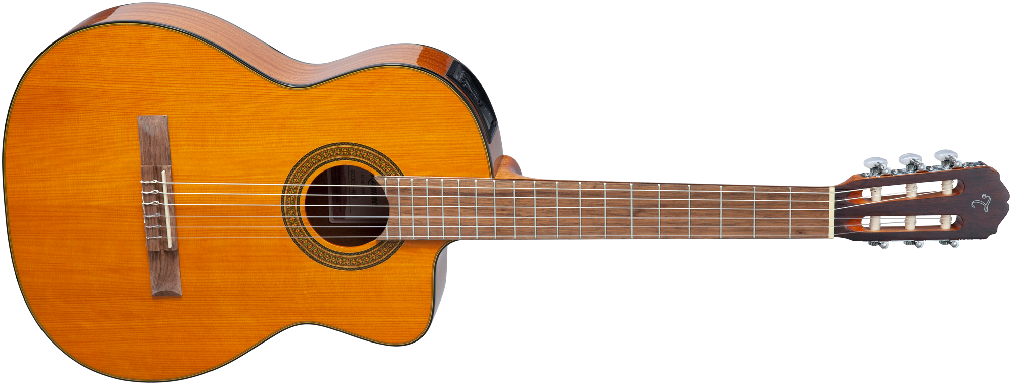 Die GC3CEN ist eine Klassikgitarre für den Bühneneinsatz mit einer massiven Decke, einem Cutaway und der unerreichten Takamine-Elektronik.